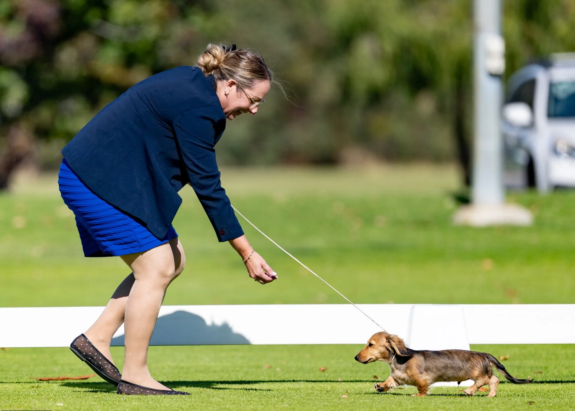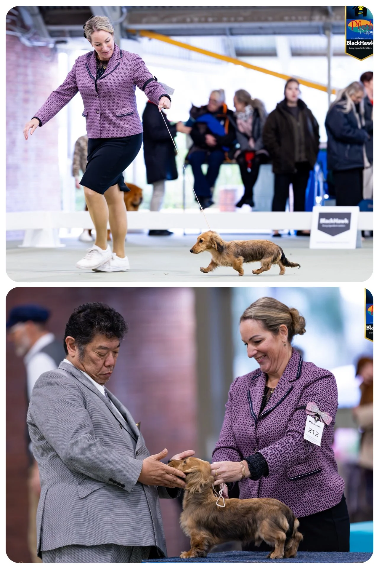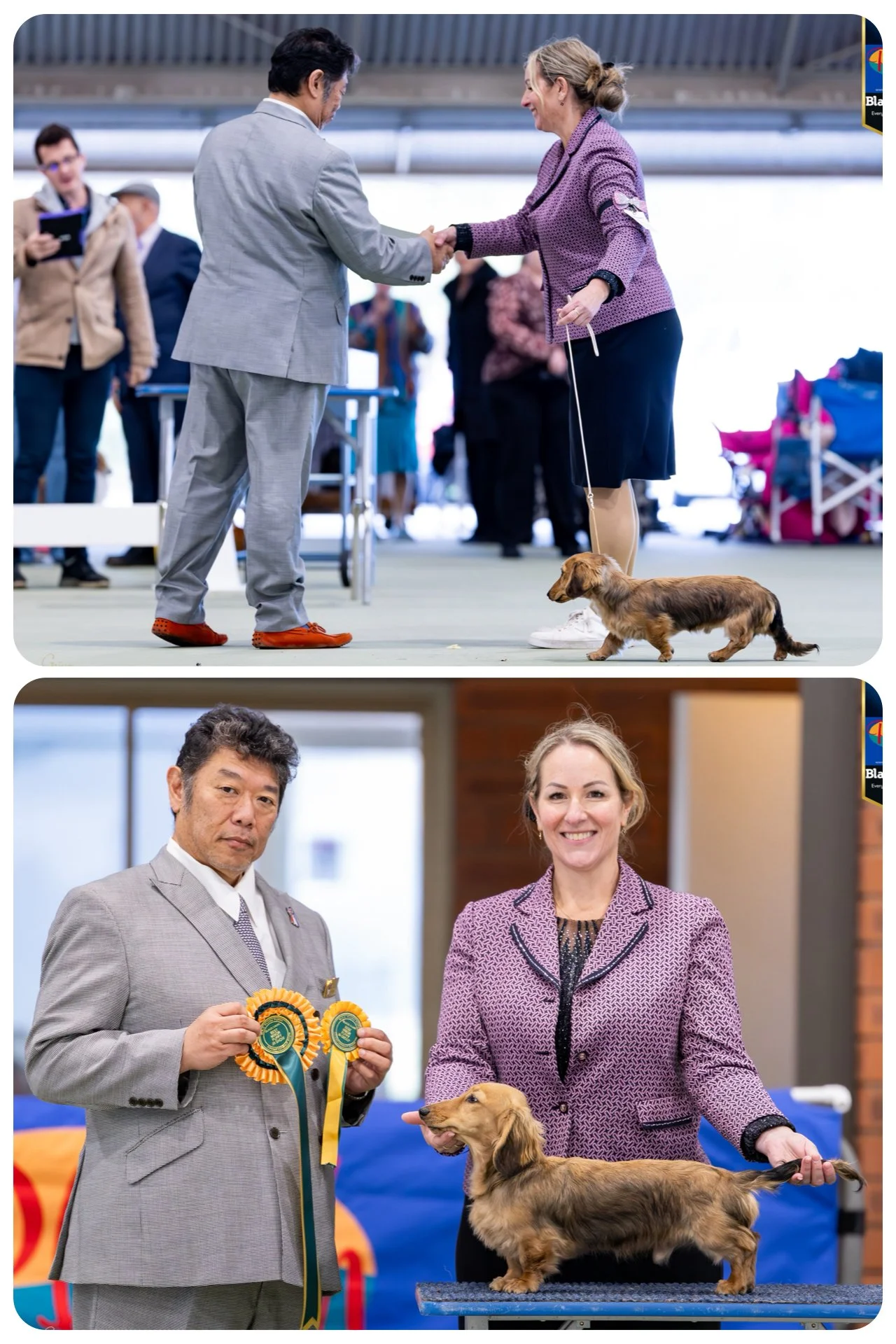 Cruise being shown under International Dachshund Specialist judge, Masaaki Amano (Japan)